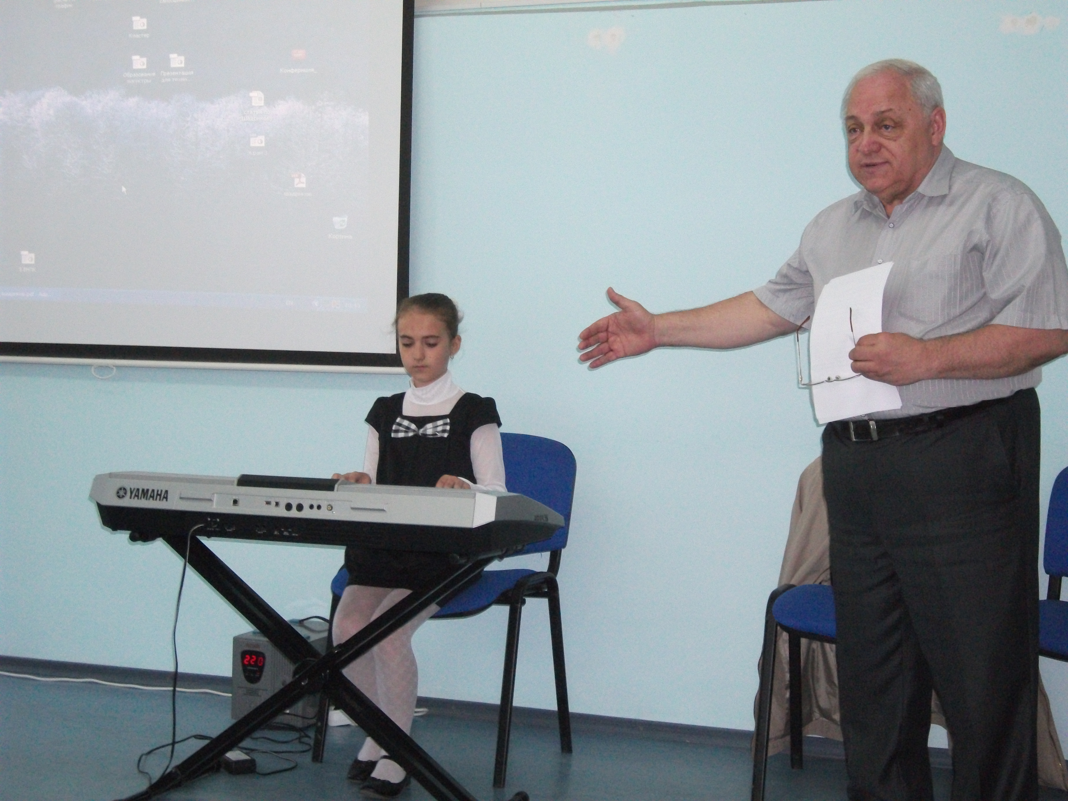 В оригинальной форме – вместе с ученицей -  представил фрагмент своего диссертационного исследования соискатель аспирантуры филиала,  преподаватель  МБОУ ДОД ДШИ им. Г.Ф. Пономаренко г. Славянска-на-Кубани     Лысенко В.В.