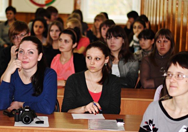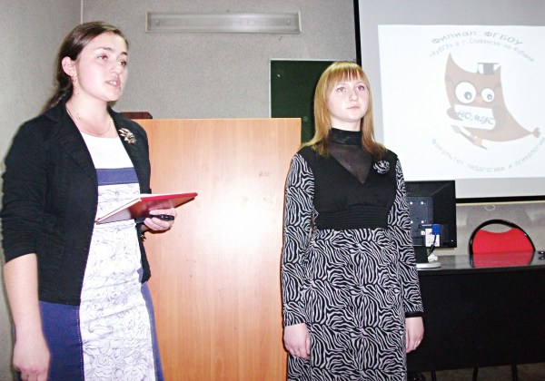 Председатель научного общества молодых ученых и студентов факультета Москаленко Елена (слева)