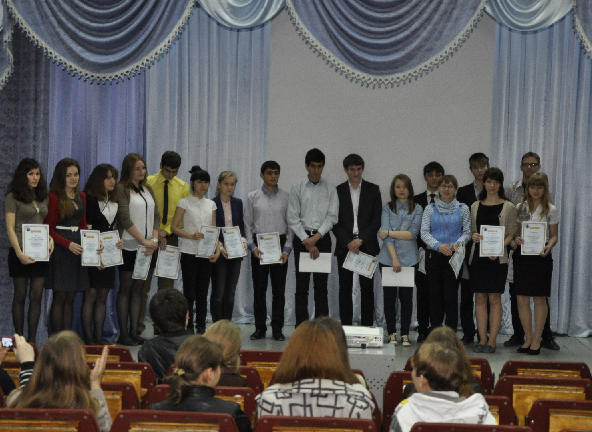 13 апреля состоялось награждение победителей олимпиады. В начале мероприятия ребят приветствовали преподаватели и студенты филиала. Деканы факультетов Филологии, Математики, информатики и технологии, Экономики, истории и права, Физической культуры и биологии вручили учащимся дипломы 2 и 3 степени.