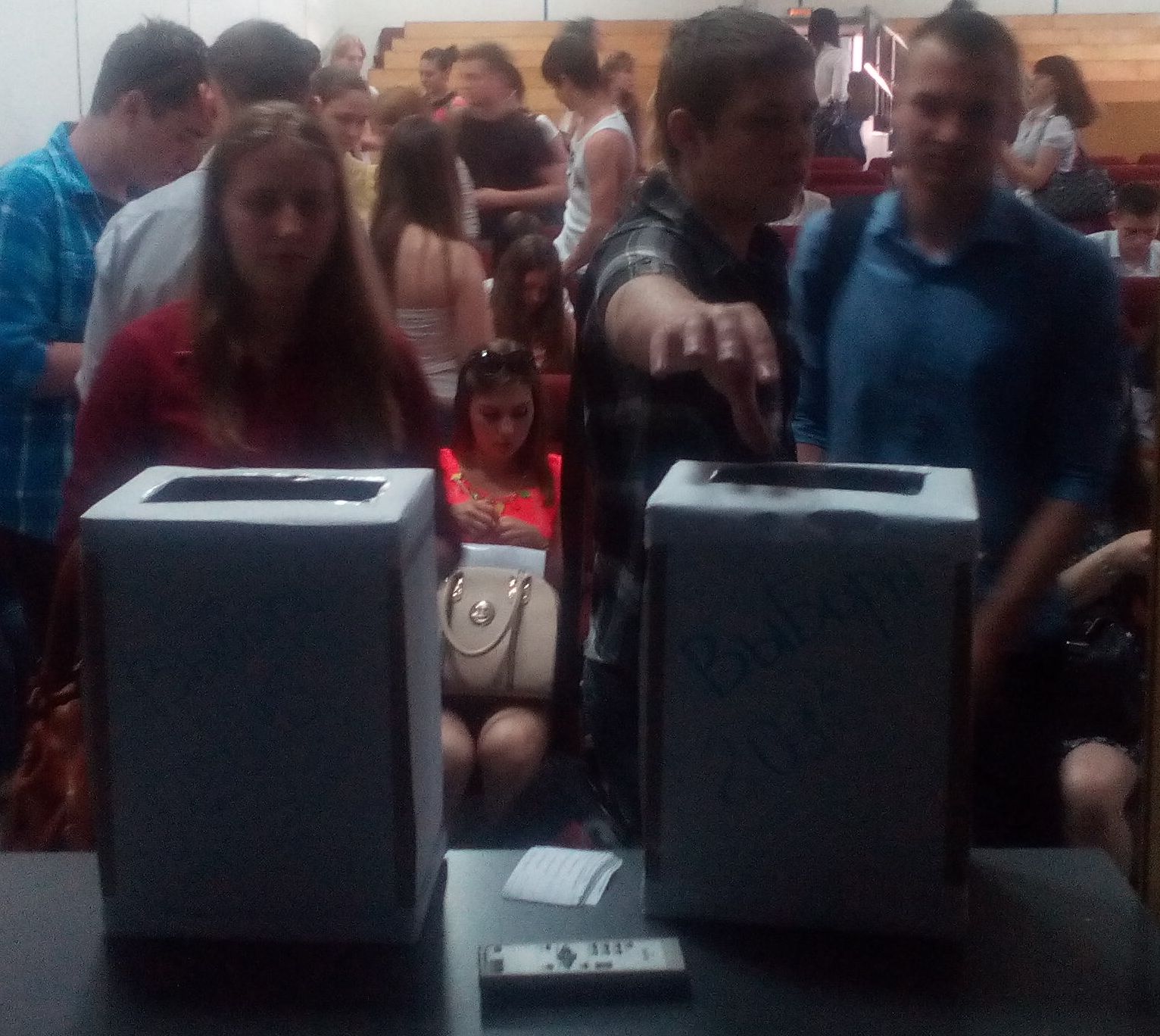 Выбор- самое главное право человека. 26 мая 2015 года в Центре среднего и дополнительного профессионального образования прошли выборы самоуправления Центра сИдпо. Ребята охотно выразили своё мнение, заполнив бюллетени. Среди кандидатов были выбраны руководители отделов: досуга, экономического, производственного, дизайнерского и спортивного. По итогам голосования руководителем отдела досуга была выбрана Цыганко Диана, студентка группы "Право и организация социального обеспечения", руководителем экономического отдела - Акланова Виолетта, студентка группы "Право и организация социального обеспечения", руководителем производственного отдела- Жуков Дмитрий, студент группы "Компьютерные сети" и Колбасей Анастасия, студентка группы "Дошкольное образование", руководителем дизайнерского отдела- Никитина Дарья, студентка группы "Дошкольное образование", должность руководителя спортивного отдела разделили Арустамян Арсен, студент группы "Компьютерные сети" и Кирий Иван, студент группы "Физическая культура". Желаем успехов победителям!