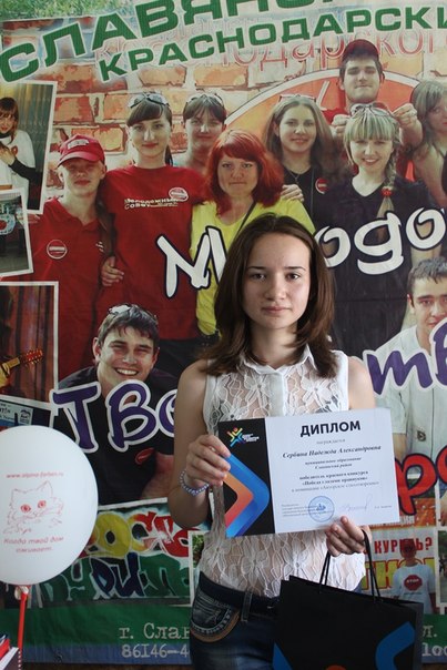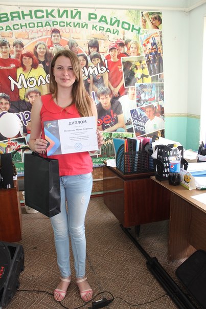 С 23 марта по 8 мая 2015 года департаментом молодежной политики Краснодарского края проводился краевой конкурс «Победа глазами правнуков», посвященный 70-летию Победы в ВОВ 1941-45гг. От Славянского района в конкурсе приняли участие 34 человека. Конкурс проводился по двум номинациям: авторское стихотворение и фотография. Победителями стали: студентка филиала «КубГУ» Сербина Надежда со стихотворением «Сирень 45 года, студентка филиала «КубГУ» Погорелова Мария с фотографиями «Мы помним». 26 мая 2015 года в молодёжном центре "Континент" состоялось награждение победителей краевого конкурса "Победа глазами правнуков". Девушки получили грамоты, а также призы от Молодёжного центра развития личности. Поздравляем наших победителей!