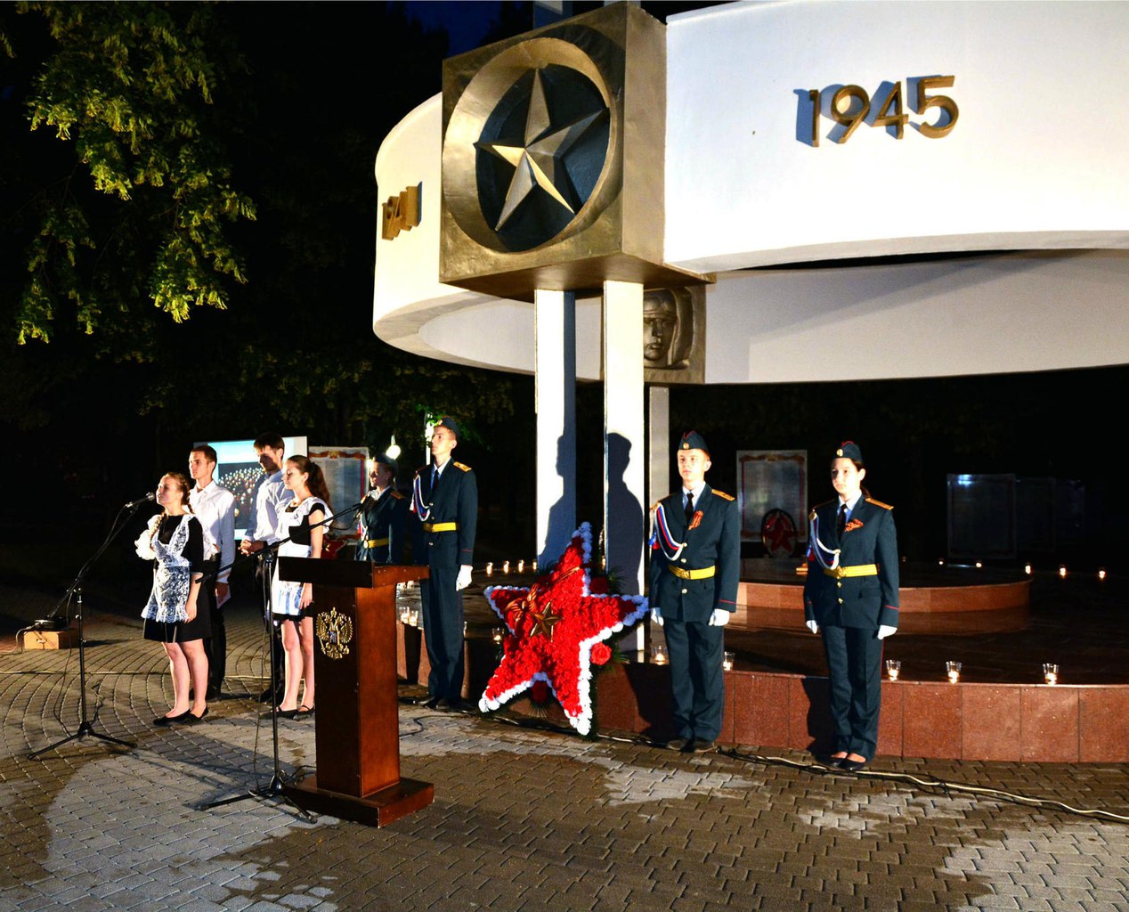 Участники представили на время, как школьники и студенты 1941 года проводили выпускной бал, который был прерван звуком сирены и голосом Левитана об объявлении войны. На митинге выступили Глава города Коновалов А.В., председатель Совета Ветеранов Салмин В.Л. и представитель общественной молодежной организации «Регион 93» Анатолий Козлов.