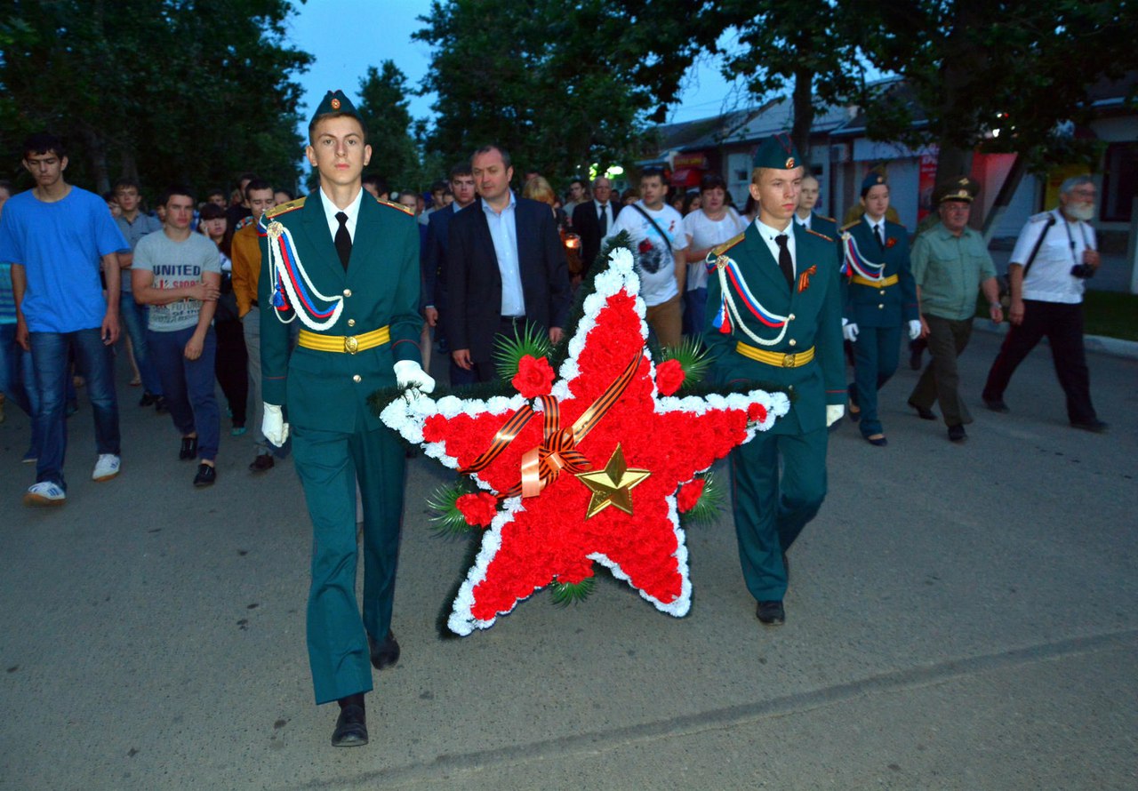 22 июня 1941 года ровно в 4 часа утра войска фашистской Германии нарушили границу Советского Союза и напали на нашу страну. Началась Великая Отечественная война, которая продолжалась 1 418 дней и ночей. В память о начале войны по всей Кубани проходит Всероссийская молодежная патриотическая акция «Свеча памяти». В нашем городе акция прошла в парке 40 лет Победы, в которой приняли участие студенты нашего филиала. Отдать дань уважения погибшим, пришли ветераны Великой Отечественной войны, Главы города и района, представители общественности, молодежь, студенты и просто неравнодушные люди.
