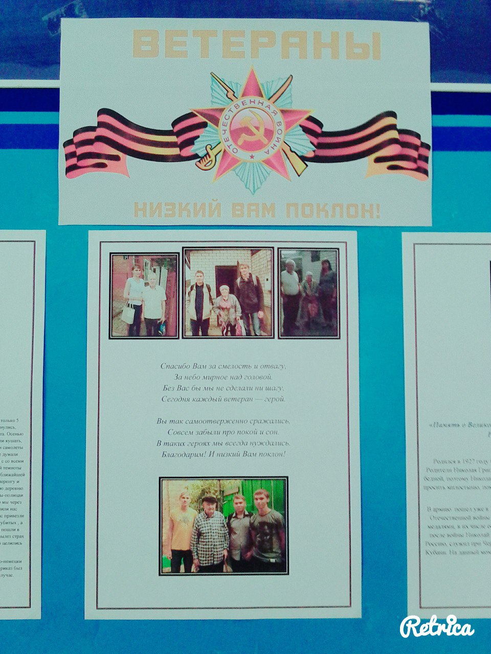 2016г. актив Совета студенческого самоуправления филиала пополнил  альбом «Пожелания ветеранов Великой Отечественной войны 1941-1945 гг. студентам филиала» новыми страницами, а также организовал работу выставки «История Великой Отечественной войны в лицах героев», которая проходит на всех факультетах филиала. В течение этого периода будут проведены кинолектории, посвященные значимым датам Великой Отечественной войны 1941-1945 гг.