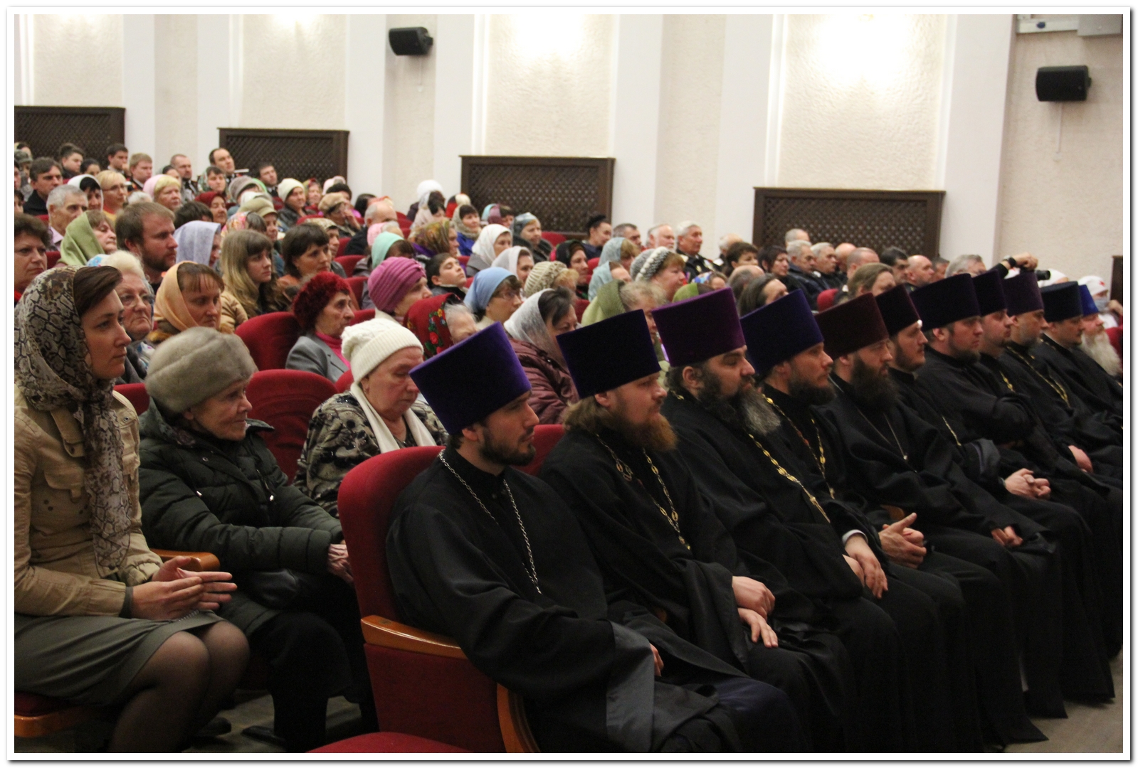 В зале собрались прихожане храмов Славянского благочиния, представители казачества, общественных организаций, молодежь, представители СМИ.