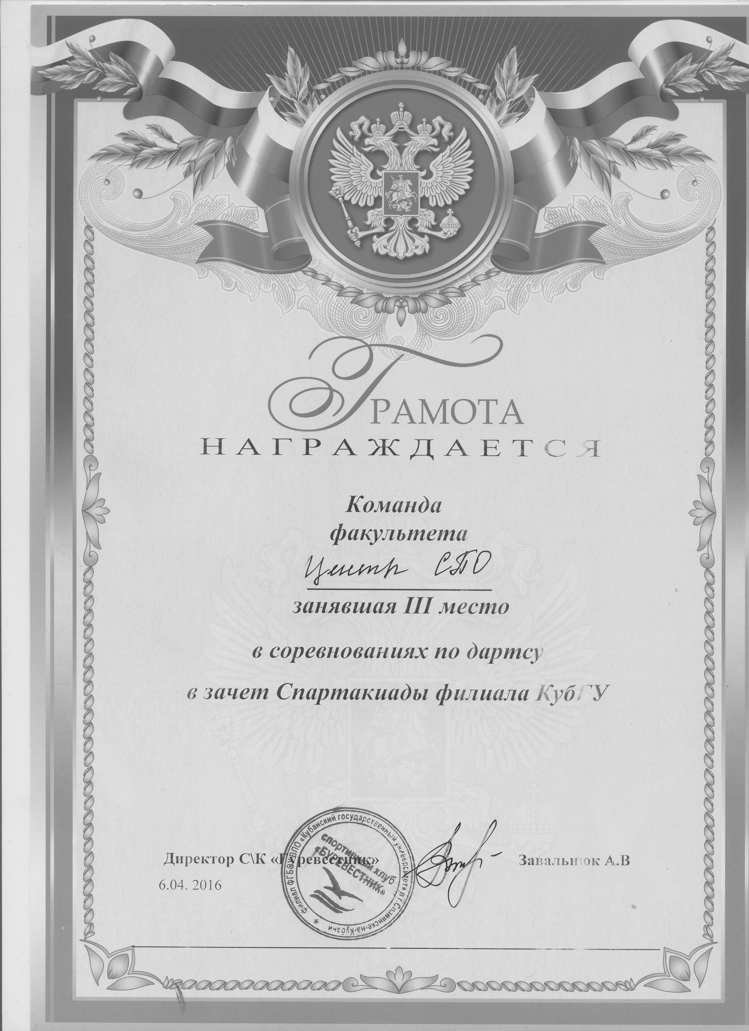 6 апреля в спорткомплексе «Буревестник» прошли соревнования по Дартсу в зачет спартакиады филиала КубГУ. Команду студентов, обучающихся по программам СПО, представили: