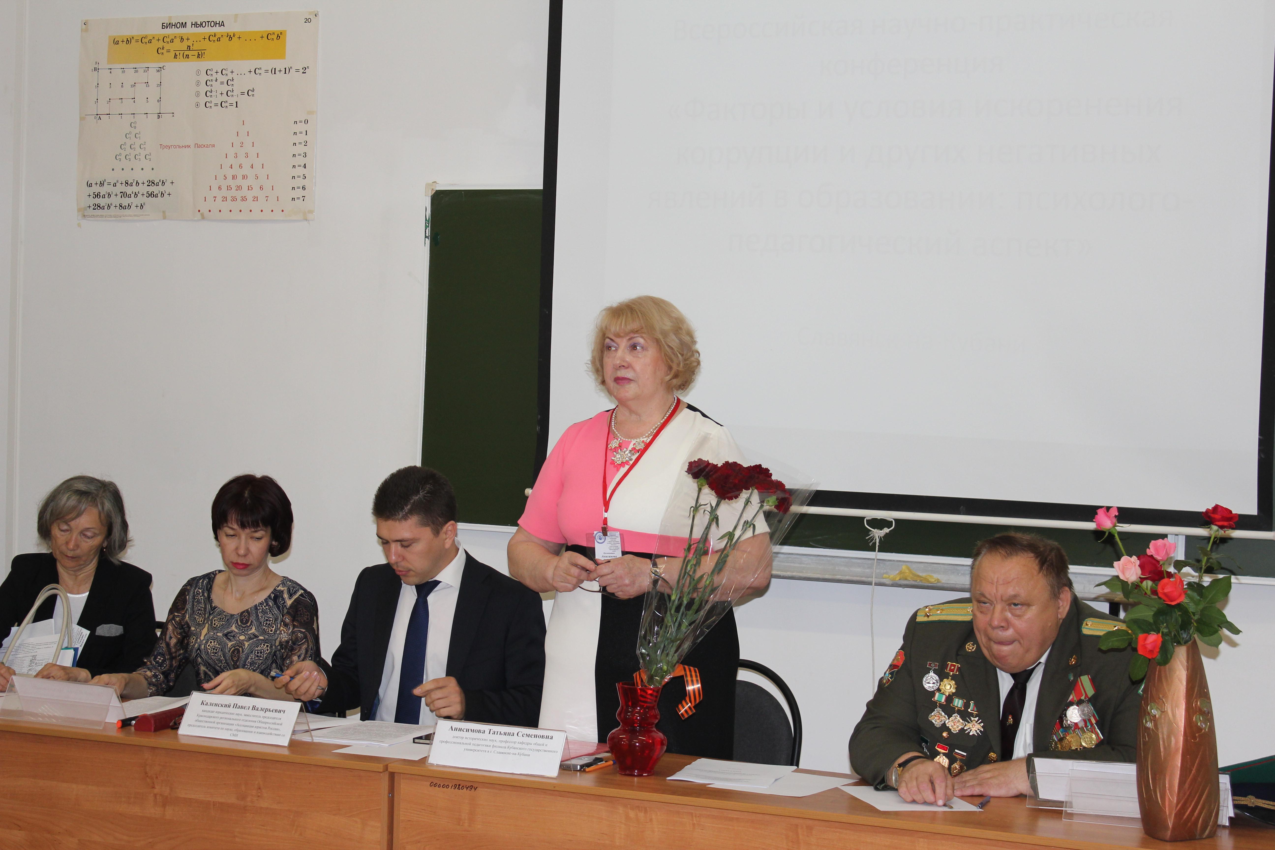 Именно этой проблеме была посвящена состоявшаяся 28-29 мая 2016 года в филиале Кубанского государственного университета в г. Славянске-на-Кубани Всероссийская научно-практическая конференция «Факторы и условия искоренения коррупции и других негативных явлений в образовании: психолого-педагогический аспект (на примере Краснодарского края)» при поддержке РГНФ и администрации Краснодарского края в рамках проекта научных исследований филиала по гранту №16-16-23005а(р) «Прогнозирование и управление рисками в образовании в динамике общности закономерностей различных отраслей знания (на примере Краснодарского края)».