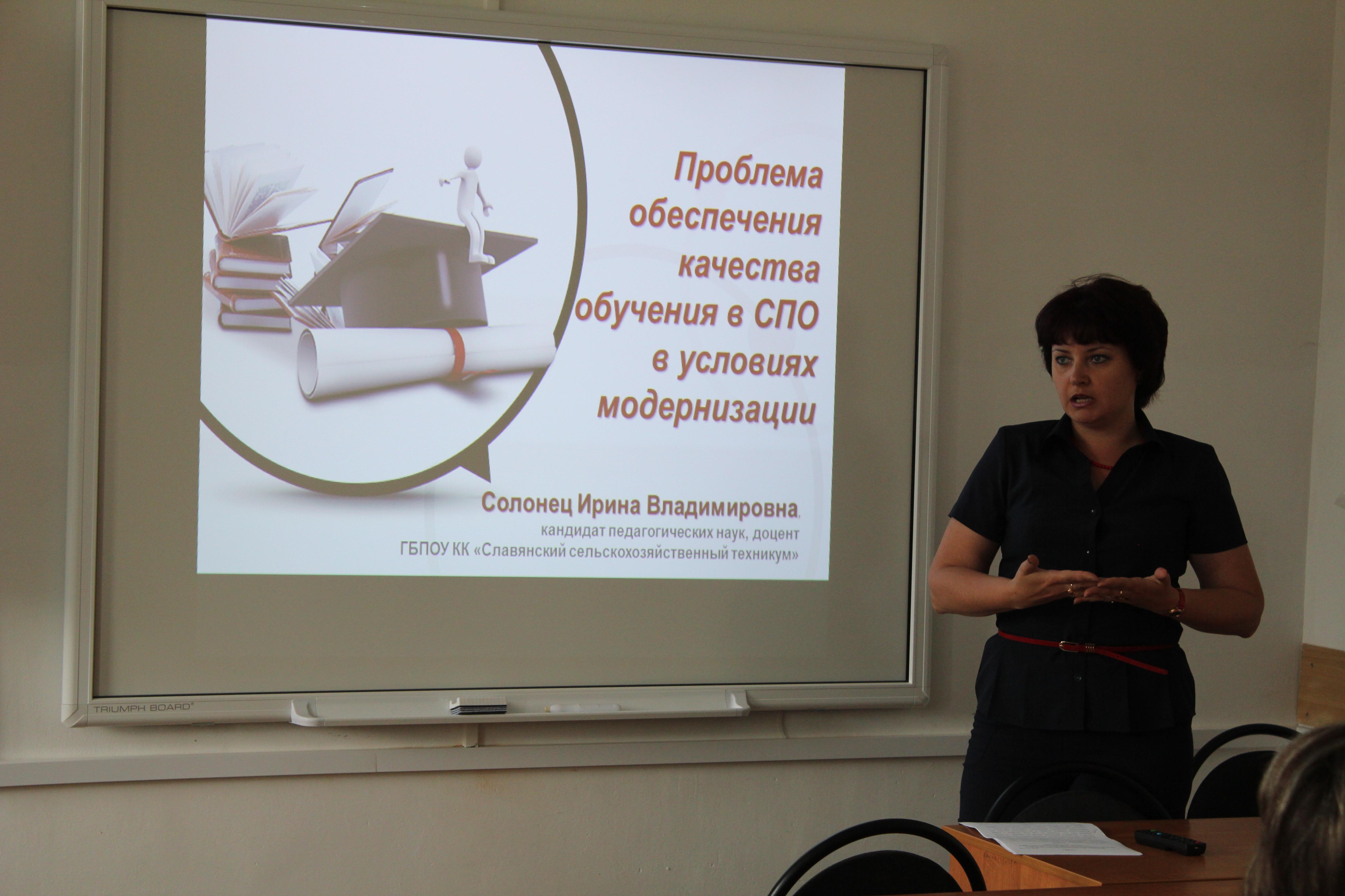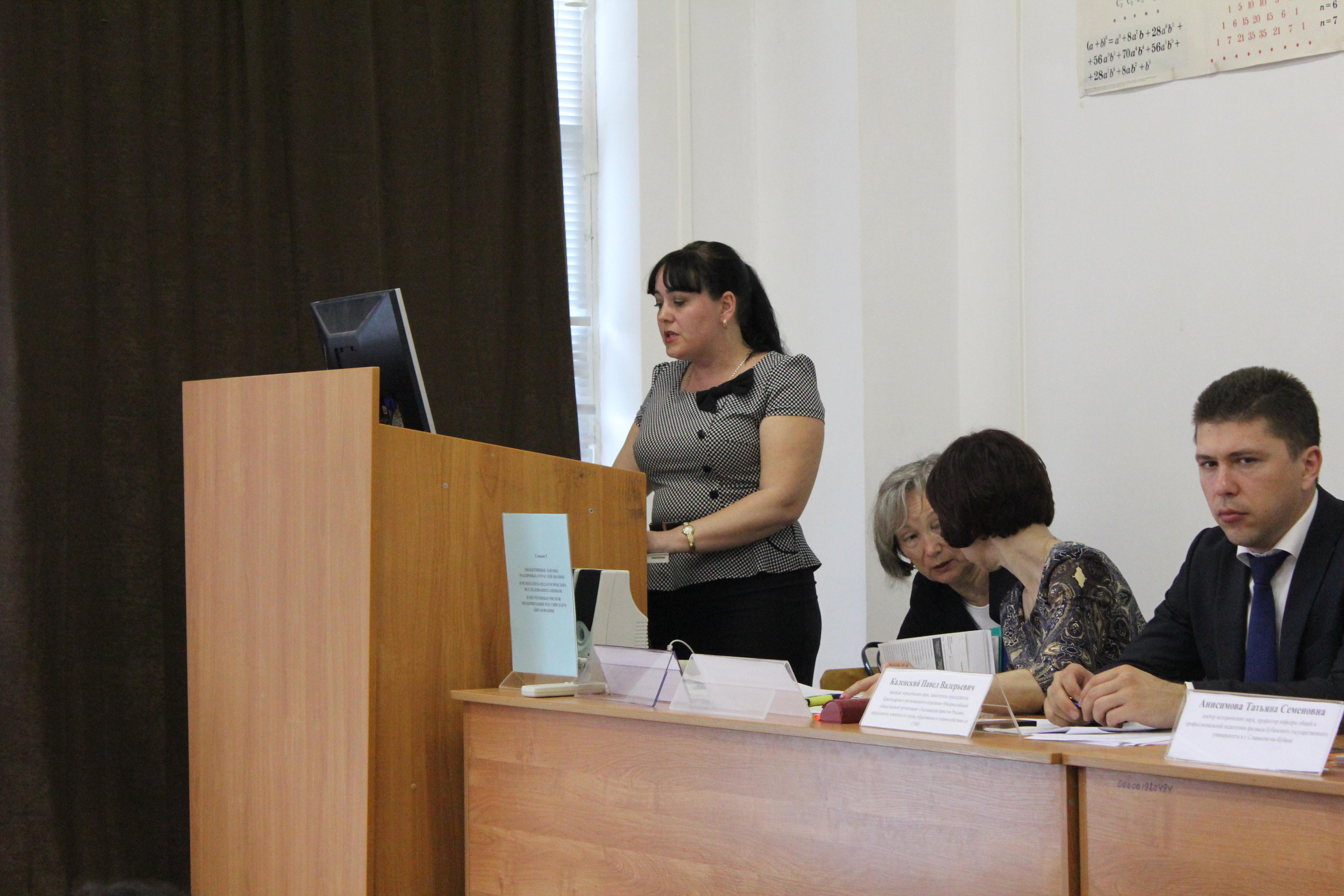 Открыла конференцию докладом «Методологический анализ влияния объективных законов на ценностные основания и смыслообразующие конструкты в современном образовании» председатель организационного комитета конференции, доктор исторических наук, профессор филиала Кубанского государственного университета в г. Славянске-на-Кубани Т. С. Анисимова.