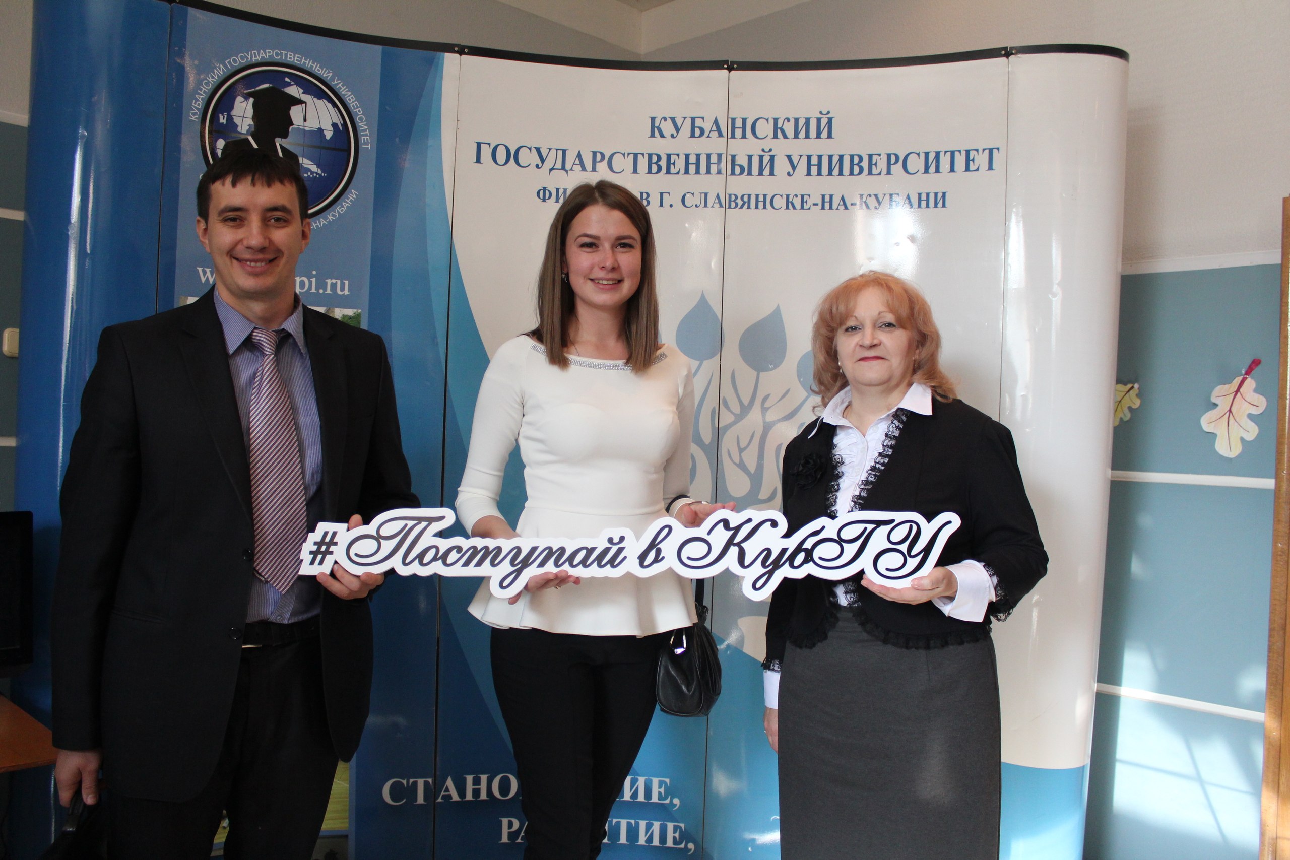 В фойе КЗ-2 всех гостей праздника встречали приветливые волонтеры, которые проанкетировали всех школьников, поделились историями о студенческой жизни. Всем будущим абитуриентам и родителям волонтеры подарили памятку-зачетку, в которой указаны координаты Центра СиДПО, планируемые специальности на 2017-2018 учебный год, сроки обучения и правила приема в 2017 году. Так же работала фотомастерская "Поступай в КубГУ". Каждый желающий мог сфотографироваться с табличкой и получить фотографию, указав свой электронный адрес.