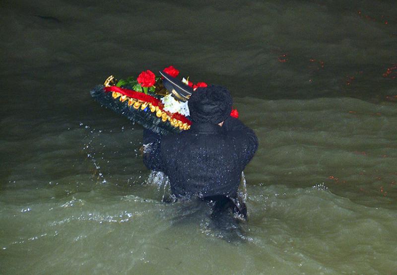 Невзирая на волны и ледяную воду, обязательный ритуал – матрос опускает в море венок с бескозыркой, которая стала главным символом героизма и отваги защитников Малой земли.