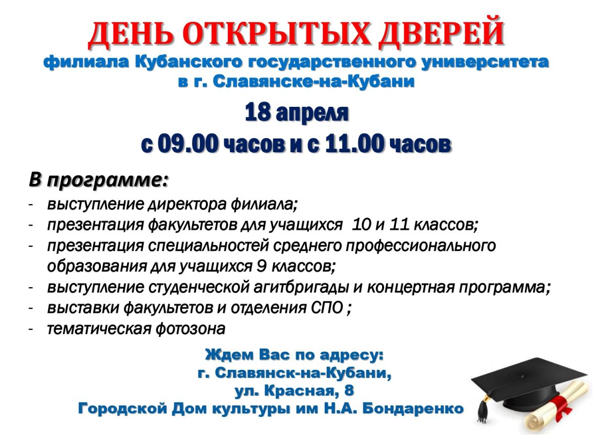 27 января, в День полного освобождения Ленинграда от фашистской блокады, студентами филиала Кубанского государственного университета в г. Славянске-на-Кубани, при поддержке управления по делам молодежи администрации Славянского района, организована работа пункта Всероссийской акции памяти «Блокадный хлеб». Задача акции – напомнить о беспрецедентном для XX века преступлении нацистов, направленном на уничтожение голодом мирных жителей Ленинграда. День полного освобождения Ленинграда от фашистской блокады в 1944 году – это День воинской славы России (отмечается в соответствии с Федеральным законом от 13 марта 1995 г. № 32-ФЗ «О днях воинской славы и памятных датах России»).