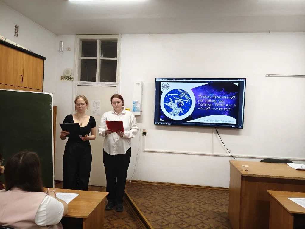 7 апреля на факультете филологии, истории и обществознания студенты 1-2 курсов профиля подготовки «Русский язык. Английский язык» провели мероприятие в формате интерактивного космоквиза «К тайнам вселенной», посвященное 65-й годовщине первого полета человека в космос. Мероприятие подготовлено совместно с членами студенческого научного общества кафедры русской и зарубежной филологии под руководством Елены Николаевны Девицкой (куратора НОМУС) и председателя СНО филиала студентки 4-го курса факультета ФИО Софьи Круть. Аудитории были представлены доклады студенток 1-го курса Бучинской Кристины «Как стать космонавтом?», Виктории Аланкиной «Женщины-космонавты», Веры Тарховой и Вероники Яценко «Животные в космосе». Проникнуться духом исследовательской эры и приобщиться к истории космонавтики помогла викторина Жуковой Екатерины и Черкашиной Виктории, которые предложили присутствующим проверить свои знания, ответив на вопросы по 4 категориям. Мероприятие прошло в теплой праздничной атмосфере в ритме песни «Земля в иллюминаторе», пополнив копилку воспоминаний о студенческой жизни наших будущих выпускников!