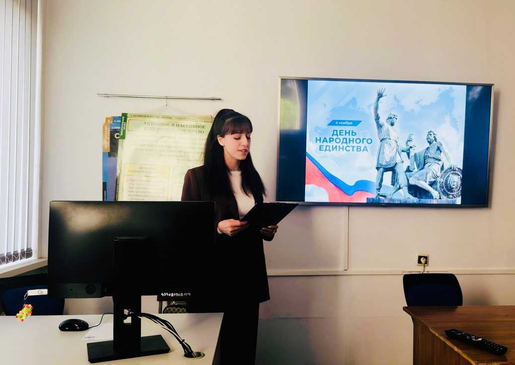 31 октября 2025 года в преддверии «Дня народного единства» на факультете филологии, истории и обществознания проведено тематическое мероприятие «Единая страна». Специалистами отдела по работе с молодежью администрации Славянского городского поселения для студентов филиала Кубанского государственного университета в г. Славянске-на-Кубани была организована викторина. Обучающиеся смогли погрузиться в историю и культуру нашей страны через увлекательную викторину, которая включала четыре тематических блока: 1 блок – «История праздника»; 2 блок – «Национальная одежда»; 3 блок – «Смутное время»; 4 блок – «Культура».