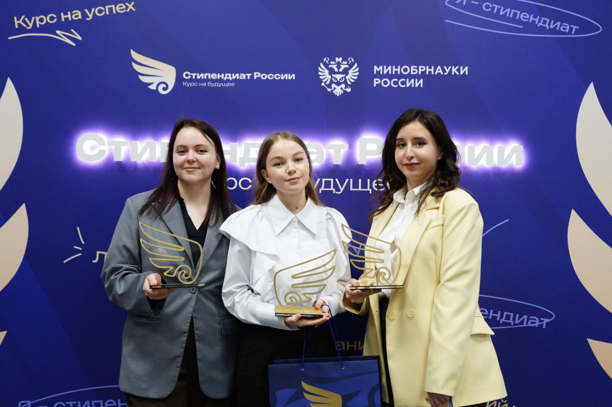 Стипендию Президента РФ получили: Дарья Филимонова, Елизавета Верченко и Елена Клишева, студентки 5 курса факультета филологии, истории и обществознания (науч. рук. доцент А.В. Махова).